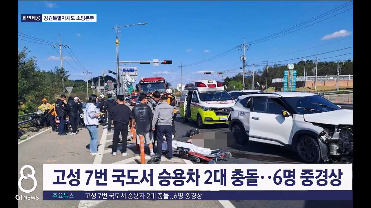 고성 7번 국도서 승용차 2대 충돌..6명 중경상