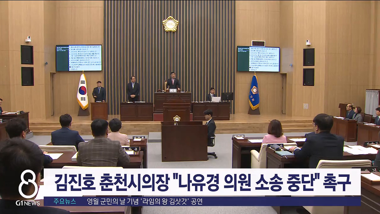 김진호 춘천시의장이 더불어민주당 나유경 의원이 제기한 징계 처분 무효 소송에 대해 "시의회와 시민에 대한 모독"이라며 소송 중단을 촉구했습니다.