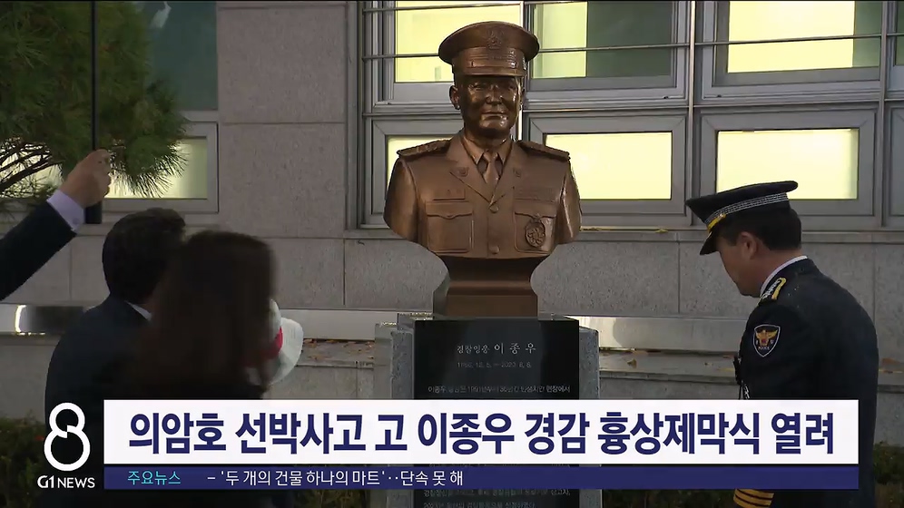지난 2020년 8월, 8명의 사상자를 낸 춘천 의암호 선박사고 당시 112 신고를 받고 출동해 순직한 고 이종우 경감의 흉상 제막식이 오늘(3일) 춘천경찰서에서 열렸습니다.