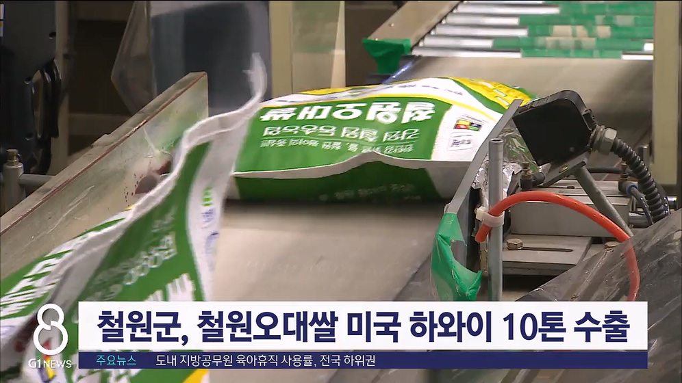 철원군이 이달부터 진공 포장된 철원오대쌀 10톤을 미국 하와이로 수출한다고 밝혔습니다.