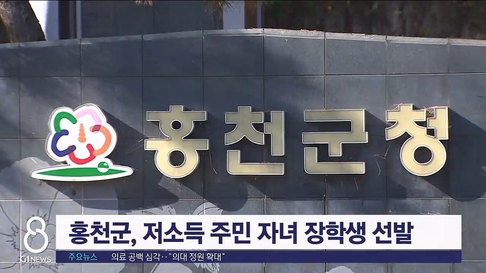지원 대상은 홍천에 거주하는 기초생활수급자 자녀로, 학업성적이 우수하거나 전국 규모의 예체기능 경연대회에서 3위 이내 입상을 한 고등학생과 대학생 등입니다.