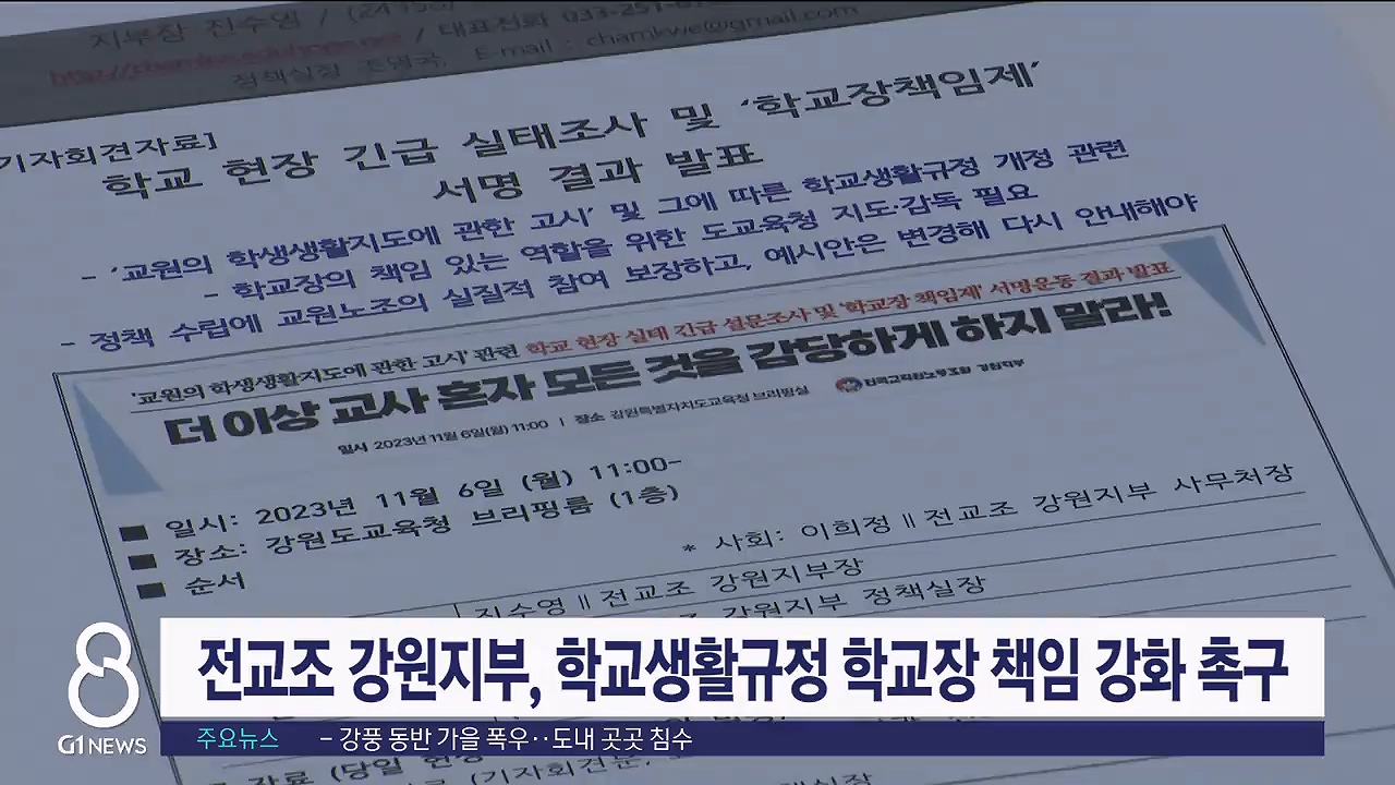 전국교직원노동조합 강원지부가 강원특별자치도교육청이 최근 안내한 '학교생활규정 예시안'과 관련해, 학교장의 책임을 강화할 것을 촉구했습니다.
