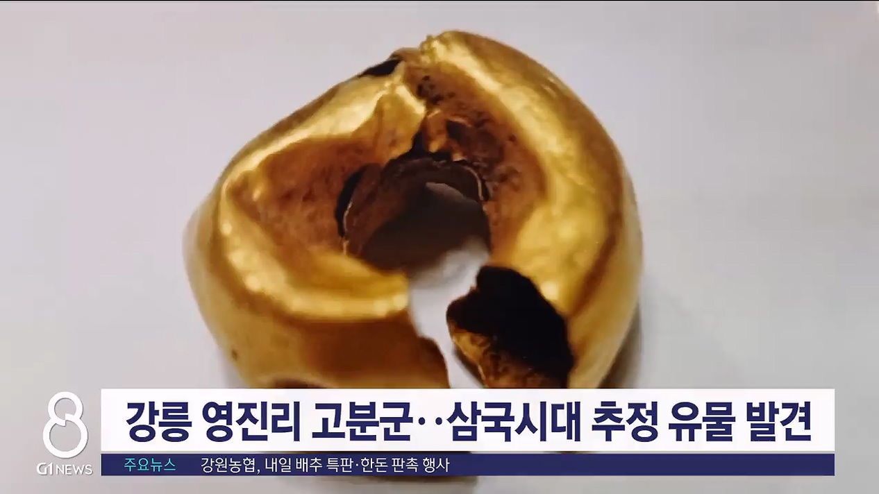 강원특별자치도 기념물 제42호로 지정된 강릉 영진리 고분군에서 삼국시대 금귀걸이로 추정되는 유물이 발견돼 학계의 관심을 모으고 있습니다.