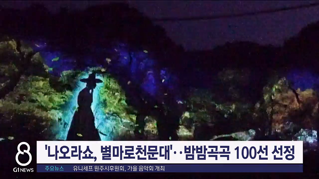 원주 간현관광지 야간코스인 '나오라쇼'와 영월 별마로천문대 등이 대한민국 밤밤곡곡 100선에 선정됐습니다.