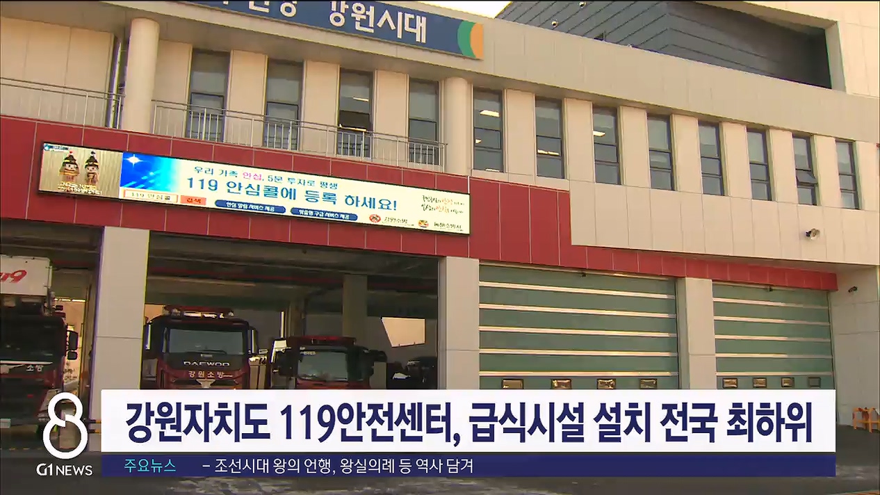 강원자치도 내 119안전센터 급식시설 설치율이 전국 최하위 수준인 것으로 나타났습니다.