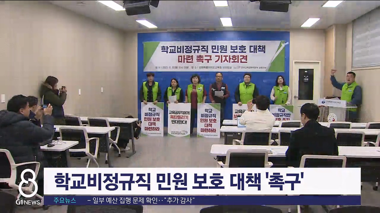 민주노총 공공운수노조 전국교육공무직본부가 도교육청에서 기자회견을 열고, 학교비정규직의 민원 보호 대책 마련을 촉구했습니다.