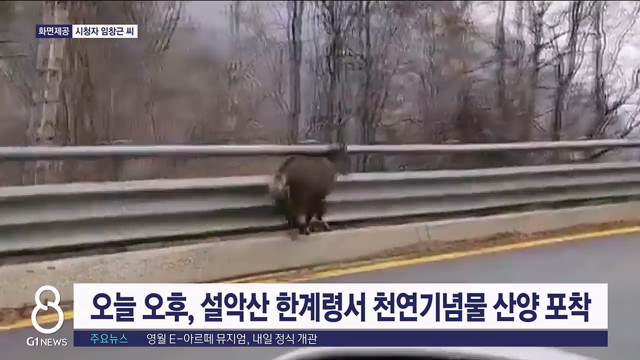 오늘(16일) 오후 2시쯤 인제군 북면 설악산 한계령에서 멸종위기 야생생물 1급이자 천연기념물인 산양이 포착됐습니다.