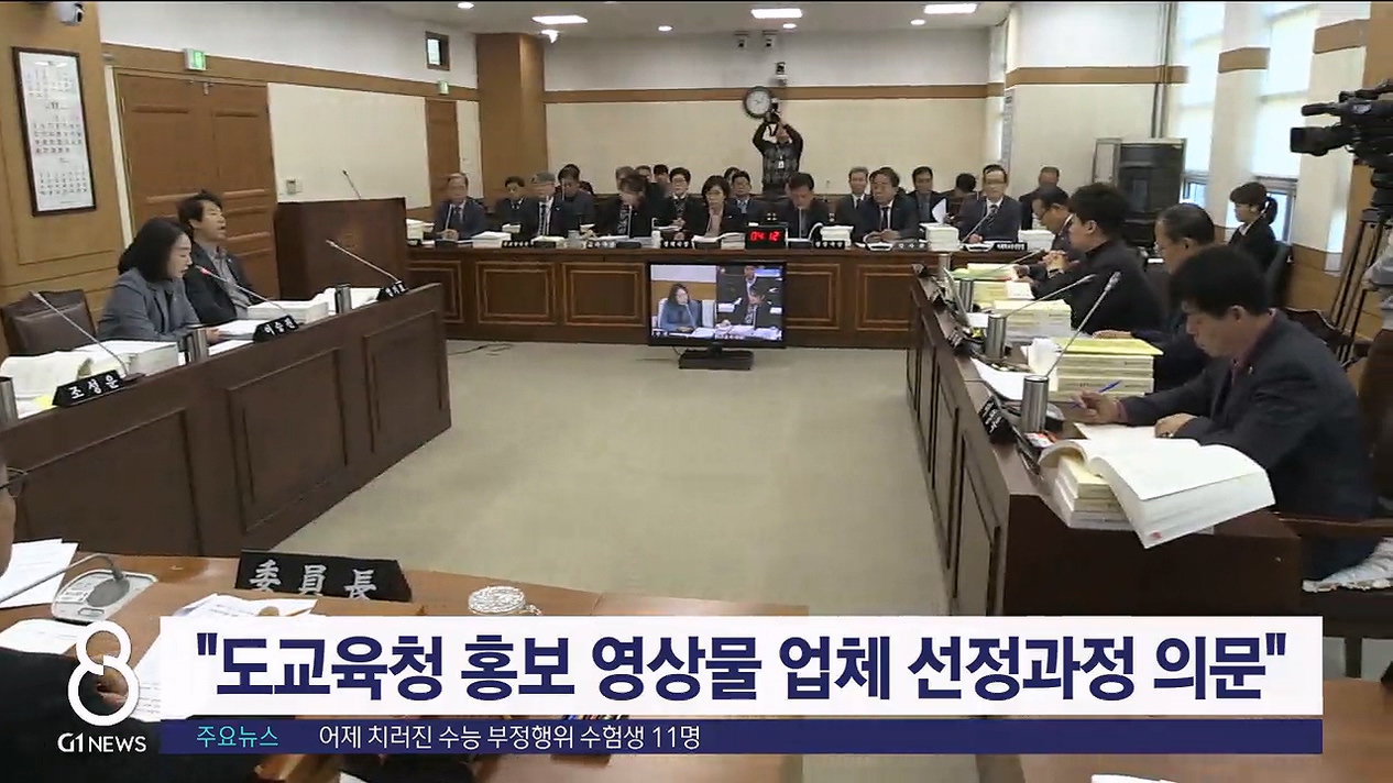 김기하 도의원은 오늘(17일) 도의회에서 열린 도교육청 행정사무감사에서 "도교육청은 교육청 출범을 홍보하기 위한 브랜드 광고 제작에 수의계약으로 5,500만 원의 예산을 썼다"며,