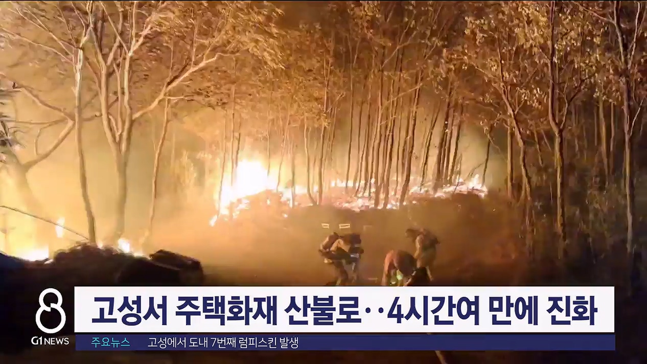 어제(18일) 오후 6시 37분쯤 고성군 죽왕면 한 주택에서 난 불이 인근 야산으로 번져 4시간 20분여 만에 꺼졌습니다.
