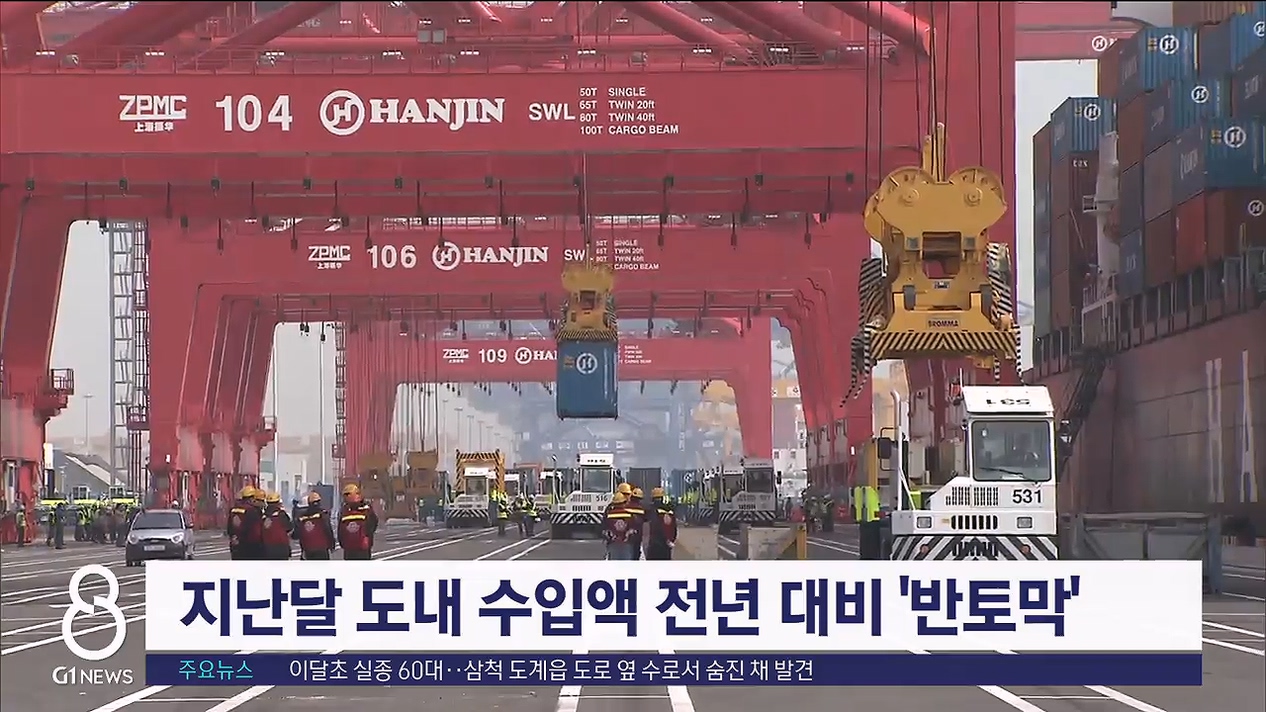 지난달 강원자치도 수입액이 지난해 같은 기간보다 50% 이상 감소한 것으로 나타났습니다.