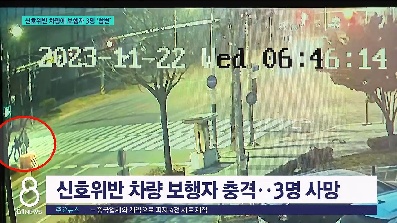 "사고 원인은 승용차의 신호 위반. 관련 자료를 좀 더 확보한 다음에 피의자 소환해서 조사할 예정에 있습니다."