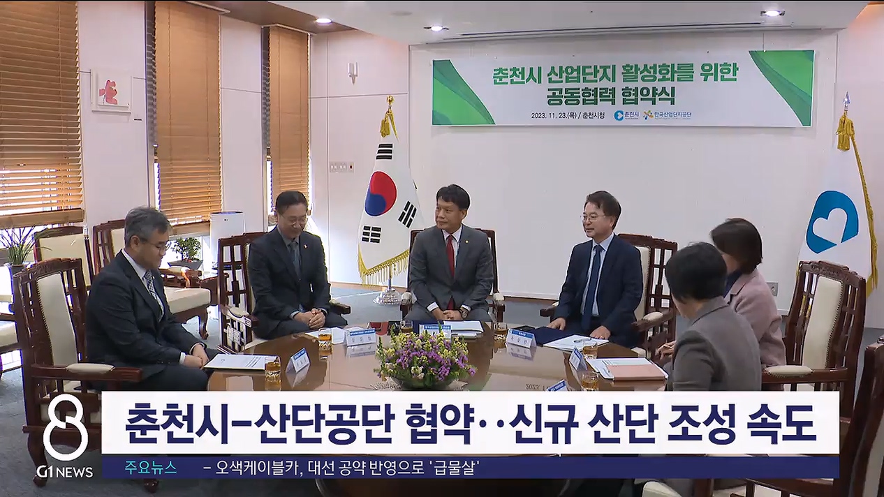 육동한 춘천시장과 이상훈 한국산업단지공단은 오늘(23일) 춘천시청에서 '춘천시 산업단지 활성화를 위한 공동협력 협약'을 체결했습니다.