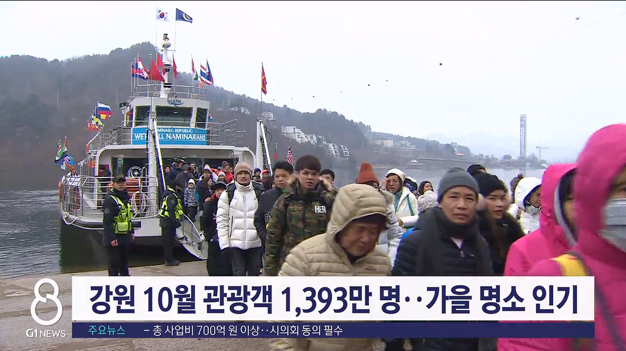 강원지역 10월 관광객이 1,393만여 명으로 전달보다 3% 증가한 것으로 나타났습니다.