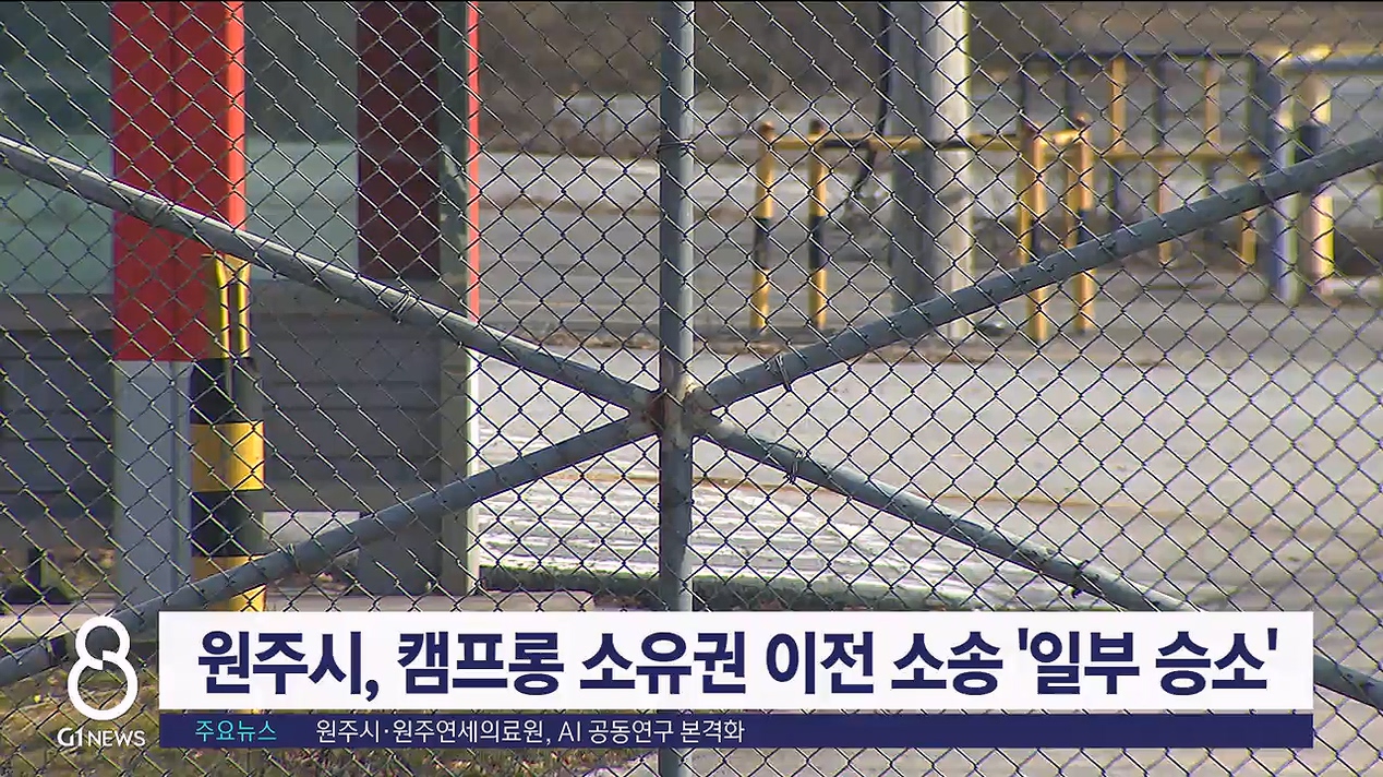 원주시가 국방부를 상대로 제기한 캠프롱 소유권 이전과 관련한 민사소송 1심에서 일부 승소했습니다.