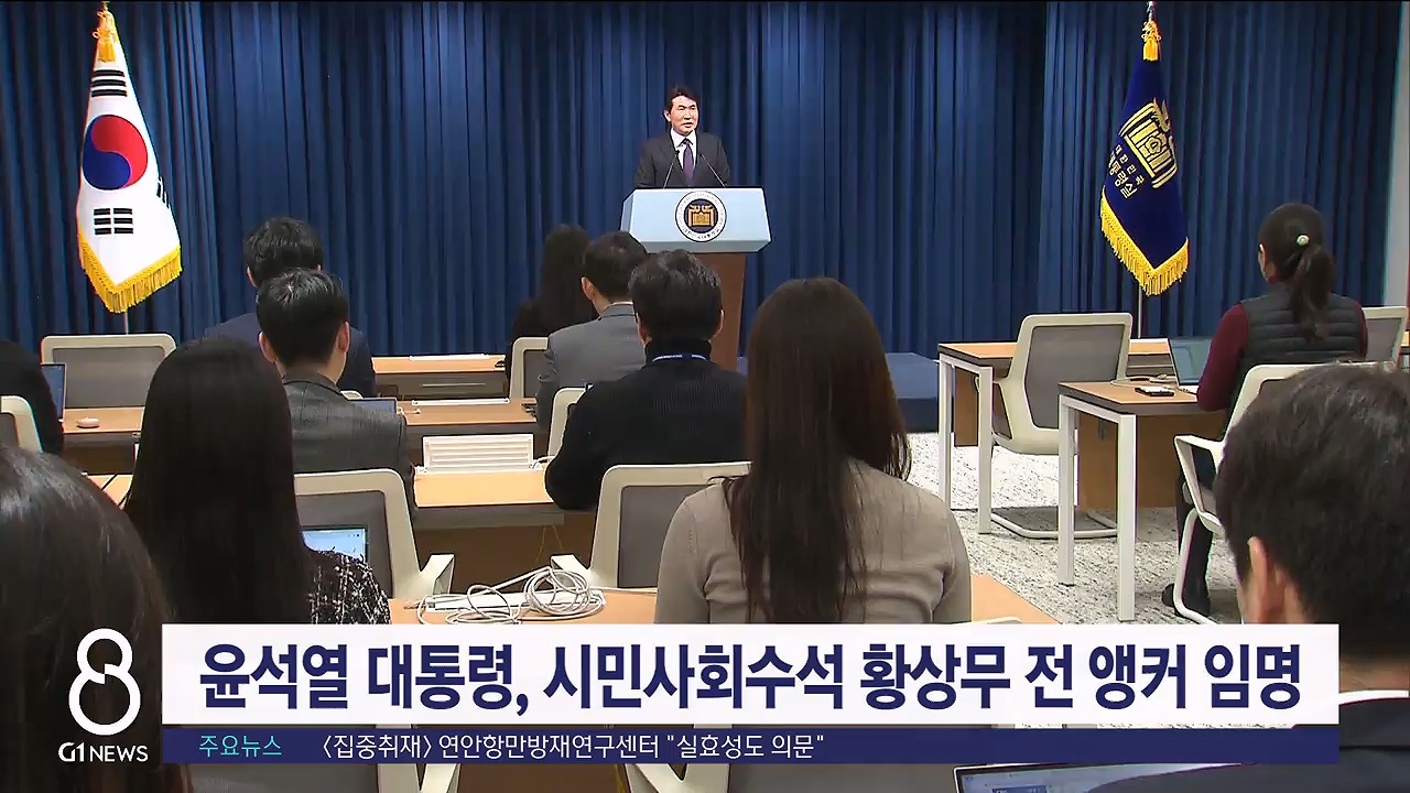 춘천고와 서울대 신문학과를 졸업한 신임 황상무 시민사회수석은 KBS 9시 뉴스 앵커를 거쳐, 지난 2021년 12월 국민의힘에 입당해 대선 때 윤석열 후보의 방송 토론회 준비를 총괄한 바 있습니다.