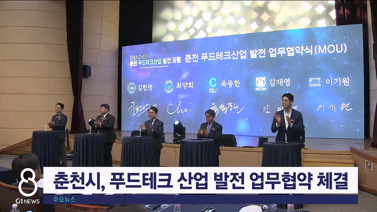 춘천시는 오늘(1일) 강원대학교 60주년 기념관에서 강원대와 한림대, 서울대 산학협력단과 한국푸드테크협의회 등과 푸드테크 산업 육성을 위한 업무협약을 맺었습니다.
