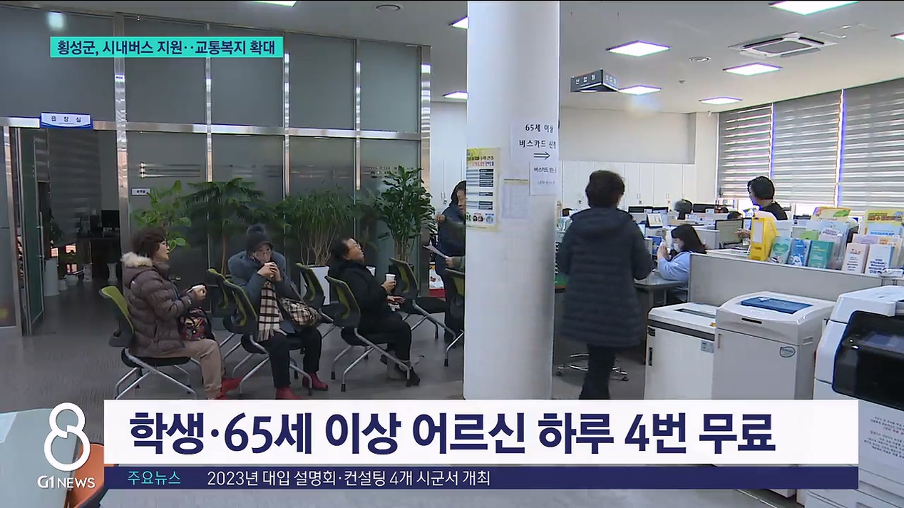 횡성군이 이달부터 초·중·고 학생과 65세 이상 어르신을 대상으로 시내버스 요금을 지원합니다.