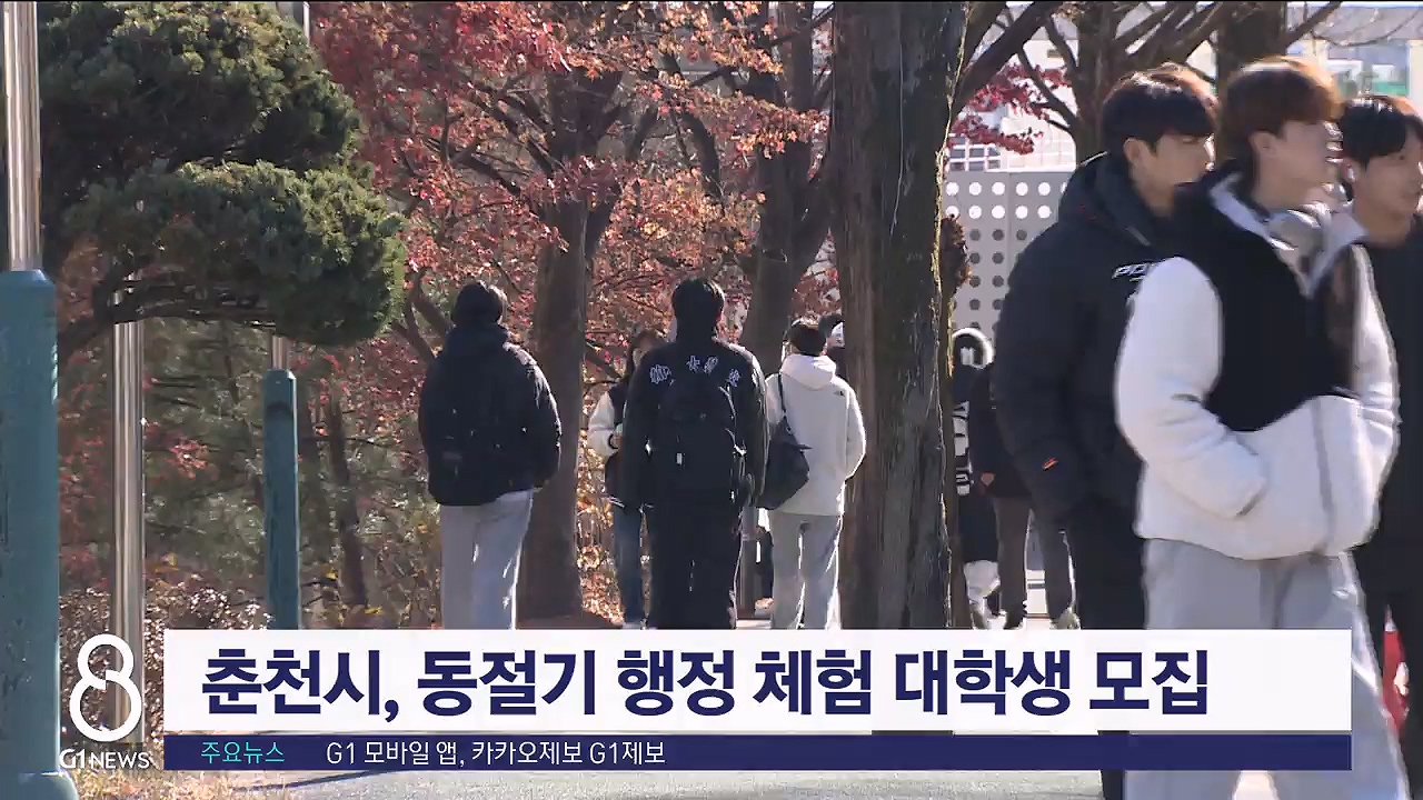 근무 기간은 내년 1월 8일부터 2월 2일까지 20일간이며, 신청 자격은 모집공고일 기준 춘천시에 주민등록을 둔 대학생과 휴학생입니다.