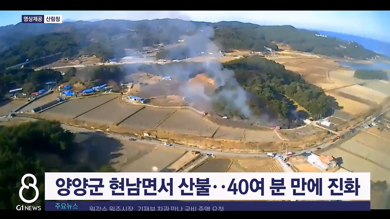 오늘(4일) 오후 1시 39분쯤 양양군 현남면 전포매리의 한 야산에서 불이 났습니다.