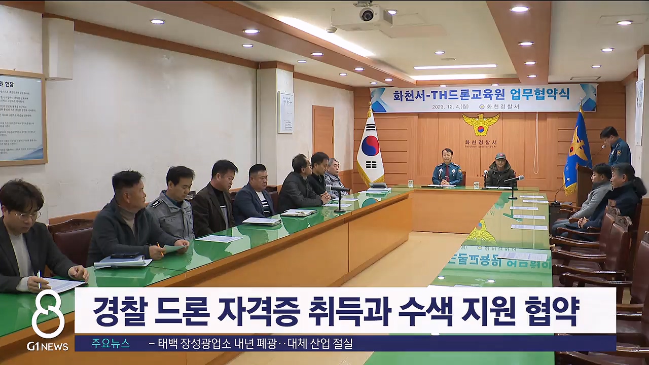 TH드론교육원은 오늘 화천경찰서와 업무협약을 맺고, 경찰관의 드론 국가자격증 취득과 지역 치안활동을 지원 하기로 했습니다.