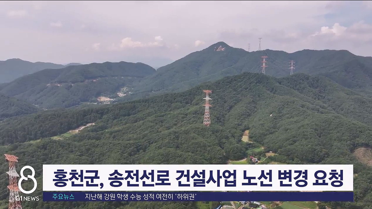 한국전력이 추진 중인 '동해안~신가평 송전선로 건설사업'에 대해 홍천군이 산업통상자원부에 노선변경과 지중화를 공식 요청했습니다.