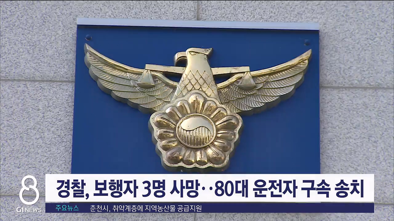 지난달 춘천시 퇴계동의 한 도로에서 승용차를 몰다 보행자 3명을 들이받아 숨지게 한 80대 운전자가 구속 상태로 검찰에 넘겨졌습니다.