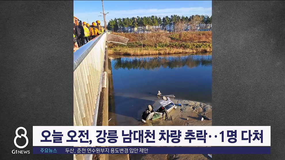 오늘 오전, 강릉 남대천 차량 추락..1명 다쳐