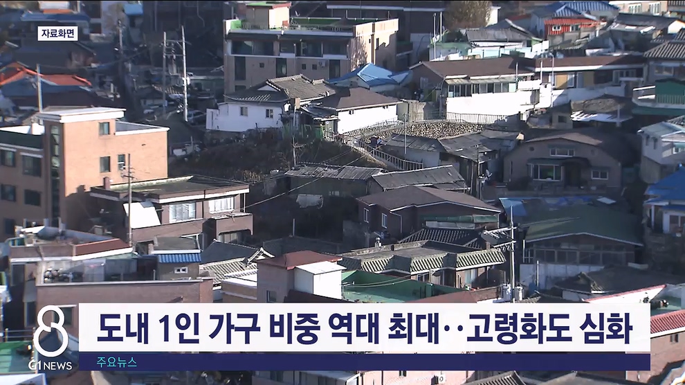 지난해 도내 1인 가구 비중이 증가하고, 고령화 현상도 심화되고 있는 것으로 나타났습니다.