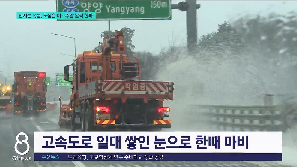 "이번 비와 눈은 강원 영동은 내일 아침까지, 강원 영서는 내일 오후까지 이어지는 곳이 있겠고요. 내일 예상되는 적설은 강원북부산지 5~10cm, 그밖에 강원 내륙과 산지는 3~8cm로 많은 눈이 내리는 곳이 있겠습니다."
