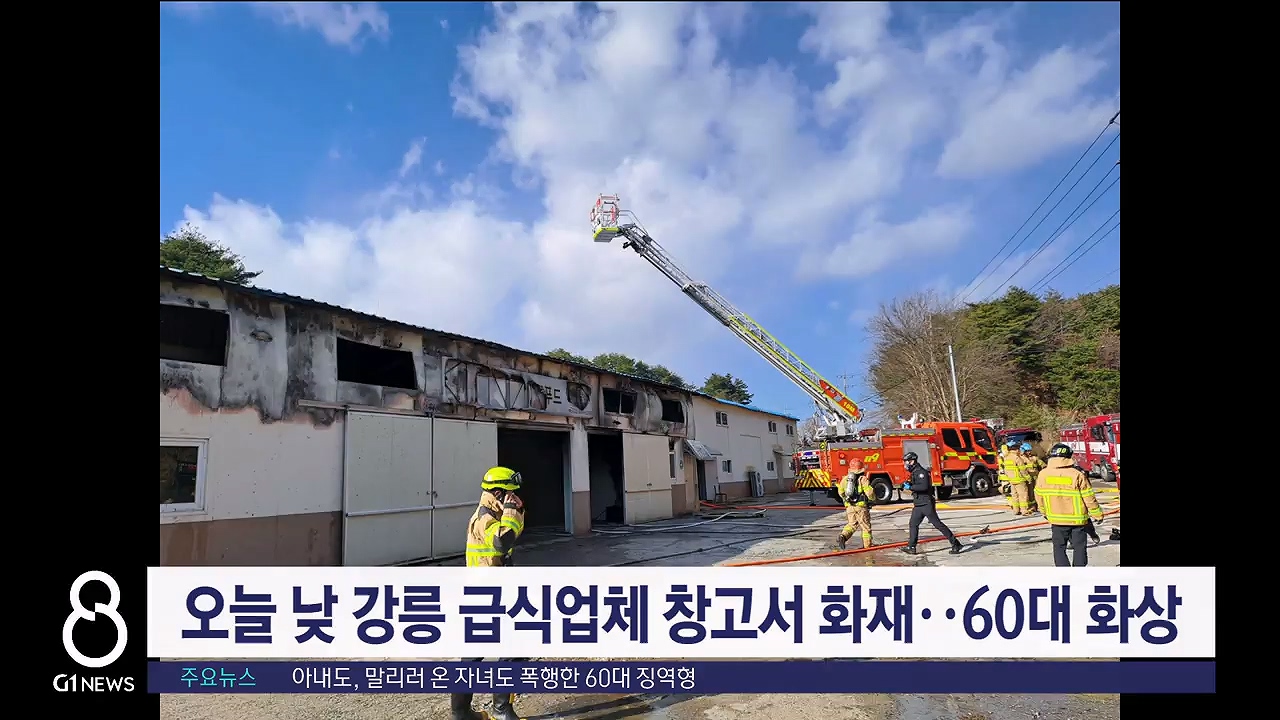 오늘 낮 강릉 급식업체 창고서 화재..60대 화상