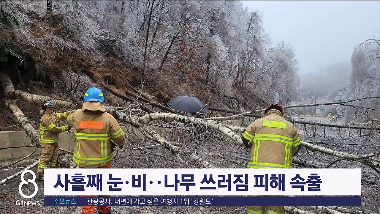 사흘째 많은 양의 눈·비가 쏟아진 가운데 강원 지역에서는 나무 쓰러짐 등의 피해가 잇따랐습니다.