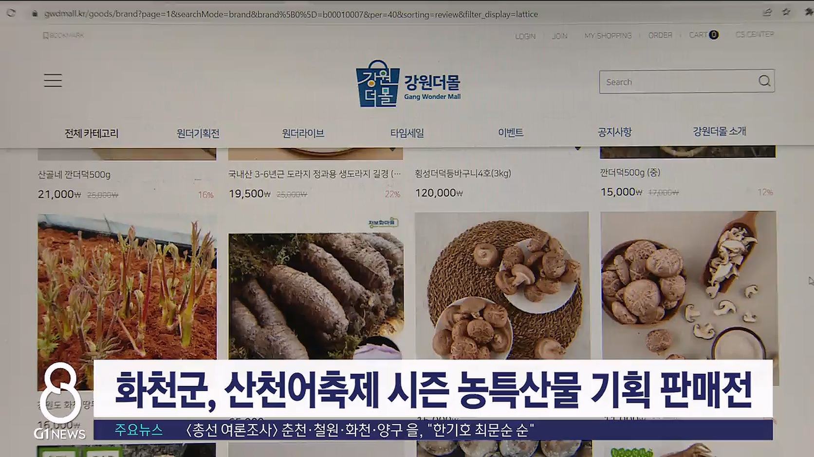 오늘(18일) '강원더몰'과 '강원화천몰' 홈페이지에서 기획전 상품을 구입하면 할인 쿠폰을 얻을 수 있습니다.