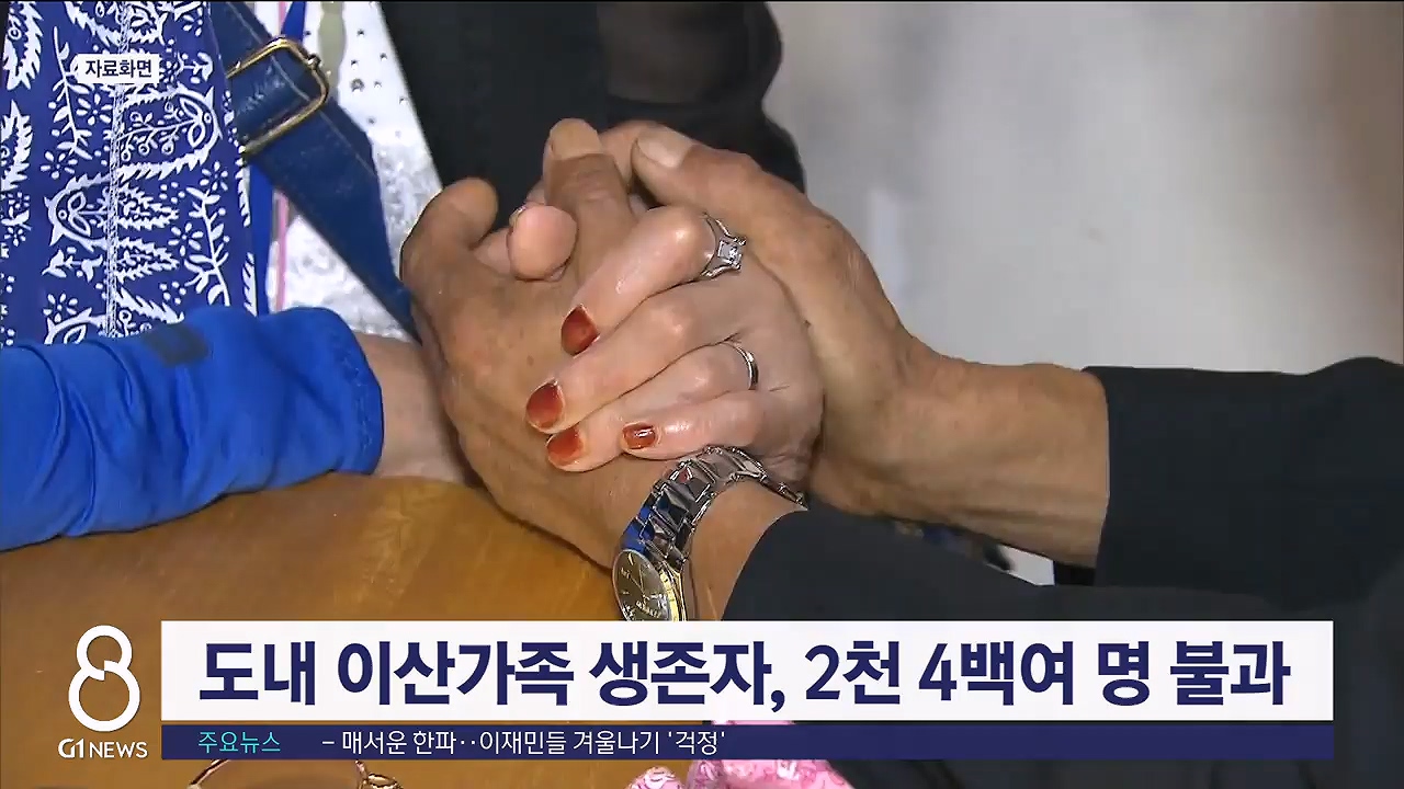 통일부에 따르면, 지난달 말 기준 정부에 등록된 도내 거주 이산가족 생존자는 2천 408명으로, 지난해 같은 기간 2천 590여 명보다 180여 명이 줄었습니다.