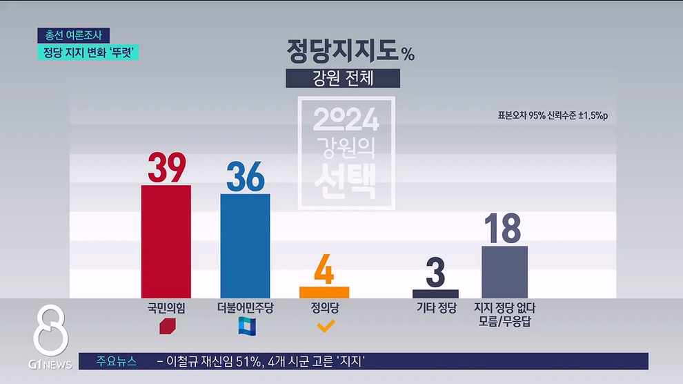 <총선여론조사> 보수 강세 강원..정당지지 변화 뚜렷