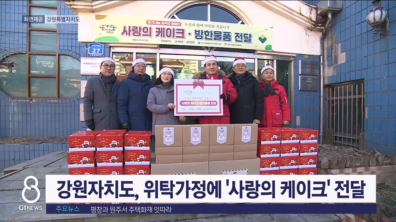 강원자치도는 어제(23일) 강원가정위탁지원센터를 찾아 케이크 50개와 방한 용품 등을 지원하는 '사랑의 케이크 전달식'을 가졌습니다.