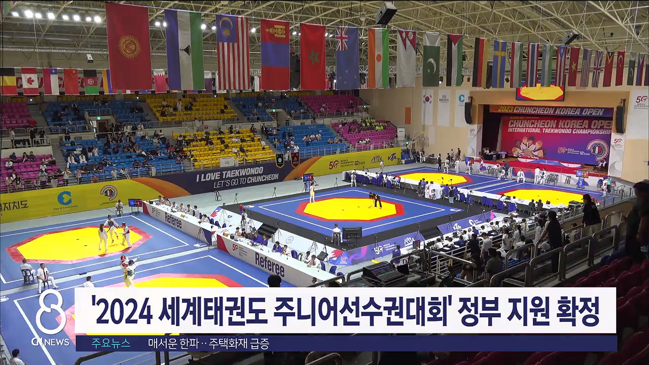 춘천시 '2024 세계태권도 주니어선수권대회'가 문화체육관광부 지자체 개최 국제경기 대회 지원 사업으로 선정돼 운영비 10억 원을 확보했습니다.