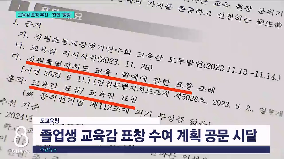 교육감 표창 추진..찬반 '팽팽'