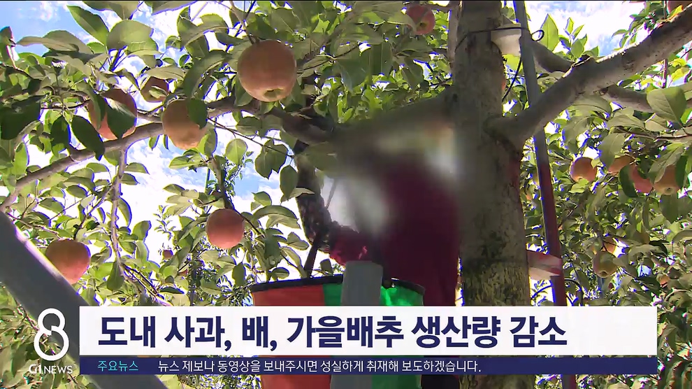 올해 강원자치도 내 사과와 배, 가을배추 생산량이 지난해보다 줄어든 것으로 나타났습니다.