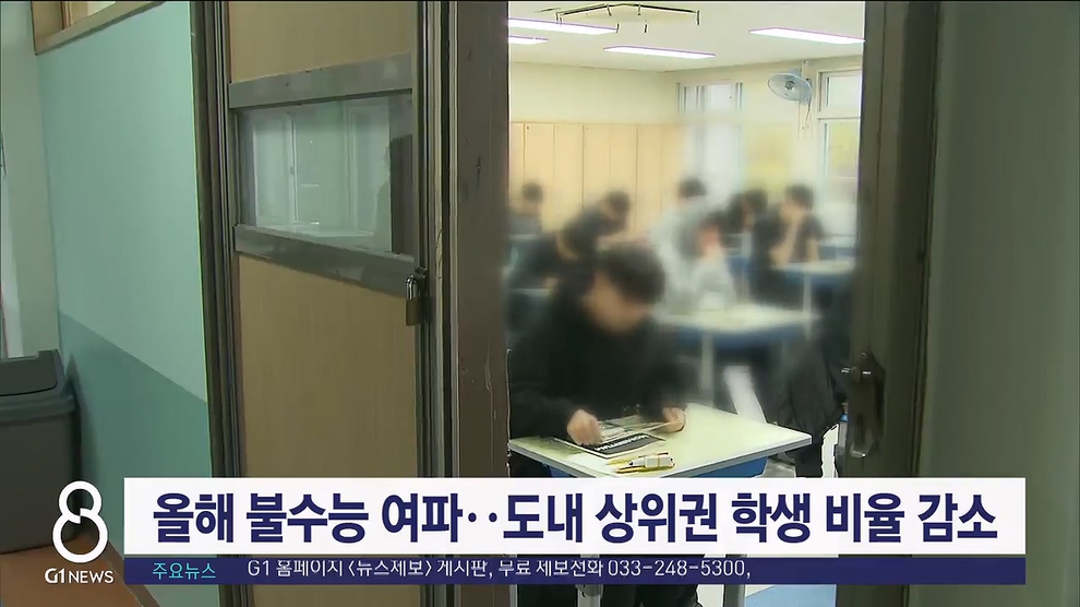 2024학년도 대학수학능력시험이 어렵게 출제되면서 강원자치도 내 상위권 학생 비율이 줄어든 것으로 나타났습니다.