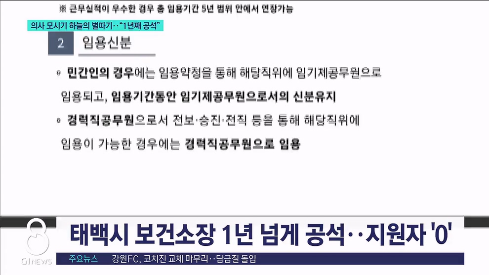 현재 도내에서 보건소장 자리가 빈 곳은 태백을 비롯해 속초와 고성 등 5개 시·군.