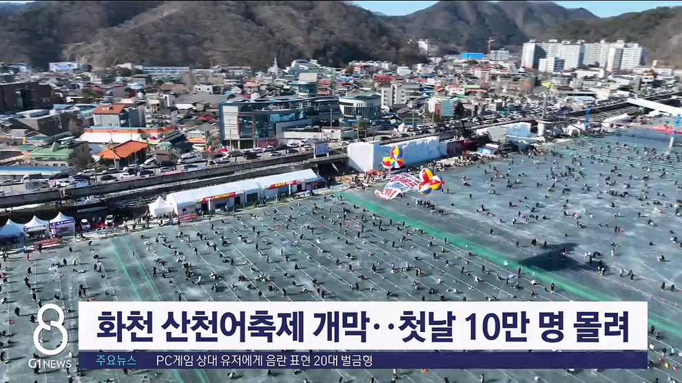 국내 최대 겨울축제인 화천 산천어축제가 오늘(6일) 개막한 가운데 축제 첫날부터 10만 인파가 몰리면서 흥행을 예고했습니다.