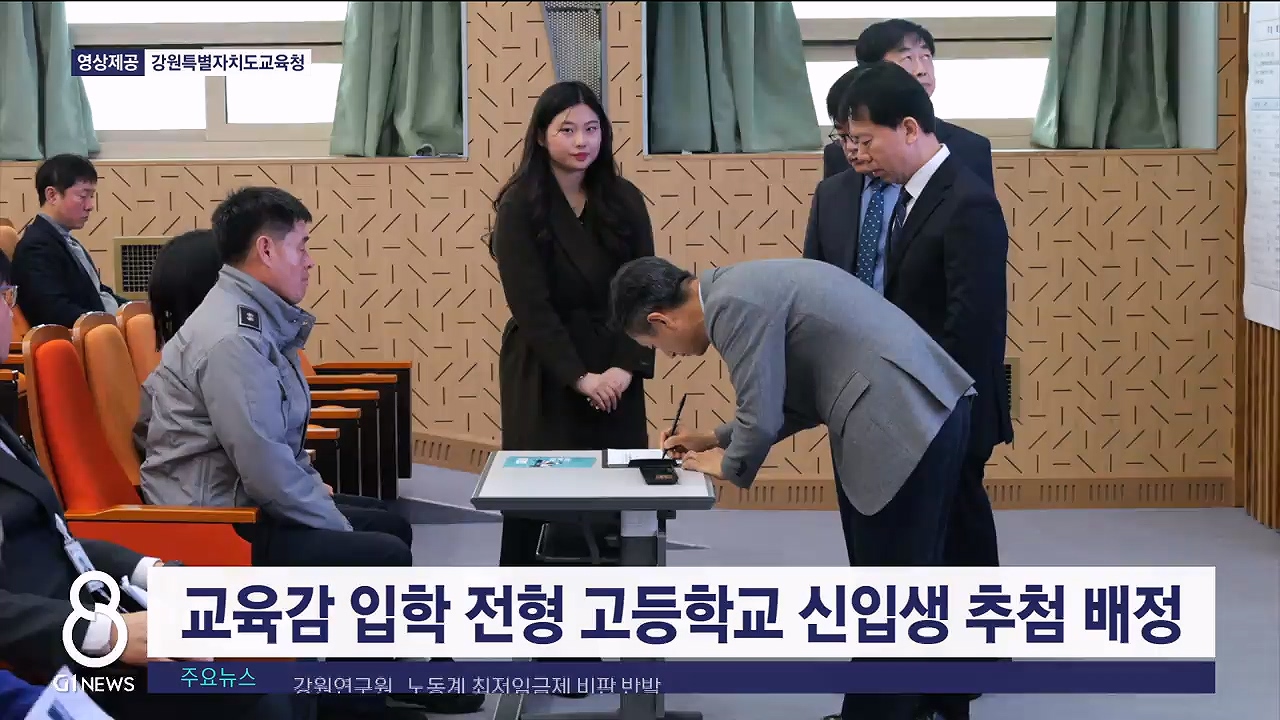 강원특별자치도교육청이 오늘(9일) 2024학년도 교육감 입학 전형 고등학교 신입생 추첨 배정을 실시했습니다.