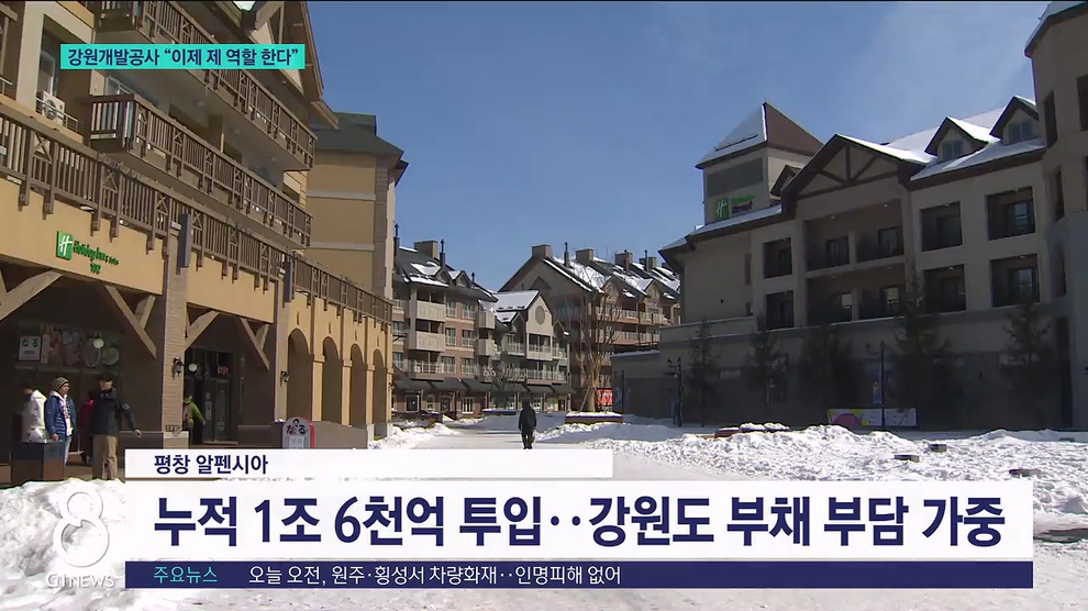 알펜시아 리조트 운영을 맡고 있던 강원개발공사는 재작년에야 알펜시아를 매각하면서 수천억 부채의 부담을 덜 수 있었습니다.