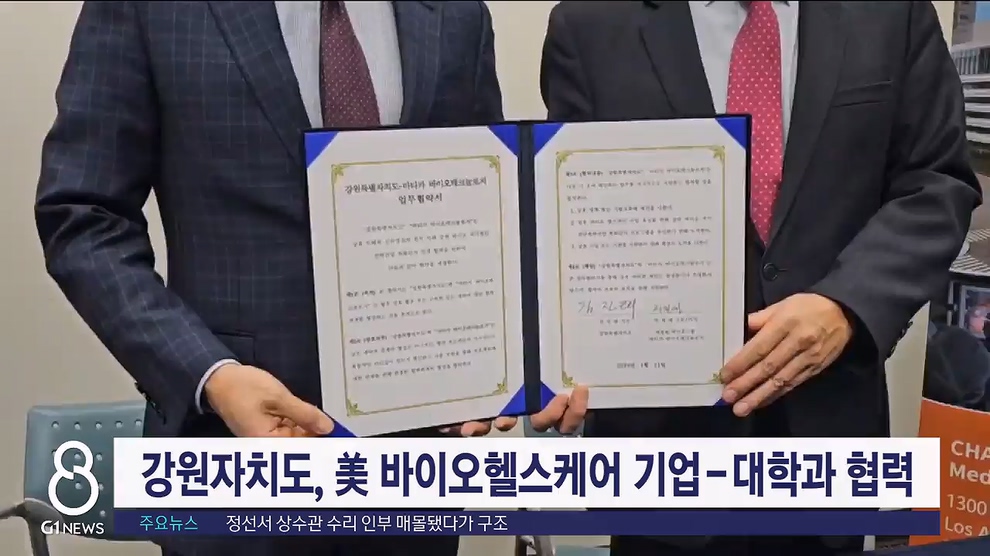김 지사는 또 서던 캘리포니아대학에서 이 대학 연구팀과 강원디지털헬스케어 지원 기업 주식회사 오톰과도 협약을 맺고,
