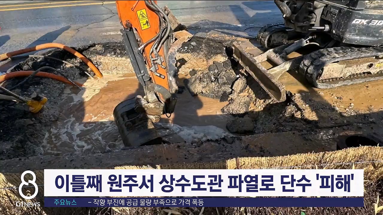 어제에 이어 오늘도 원주 지역에서 상수도관 파열이 잇따라 발생해 주민들이 큰 불편을 겪고 있습니다.