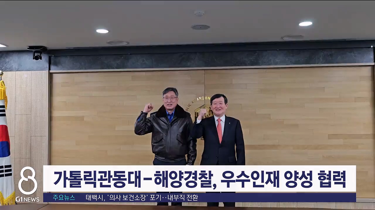 가톨릭관동대와 해양경찰청은 오늘(17일) 업무추진 간담회를 열고, 우수인재 양성을 위한 상호교류와 협력을 늘려나가기로 했습니다.
