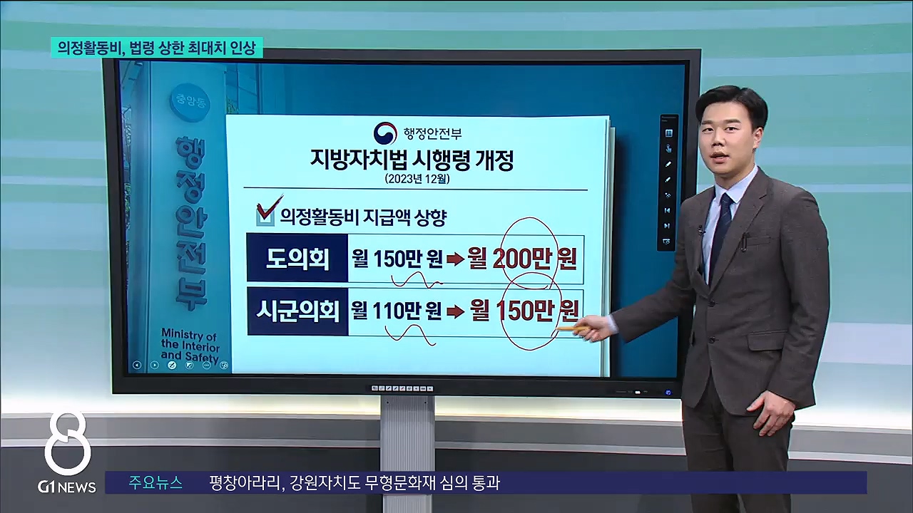 /지난해 12월, 의정활동비 상한이 오른 지방자치법 시행령 개정안이 시행되면서 강원특별자치도의회는 물론 시군의회도 인상을 추진하고 있습니다.