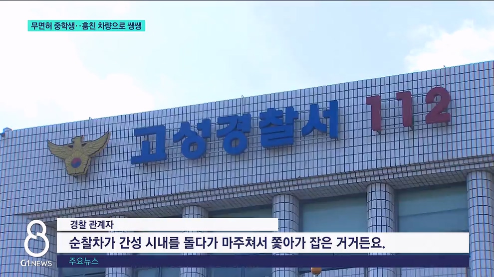 어젯밤 고성에서 중학생이 훔친 차량을 운전하다 경찰에 붙잡혔습니다.