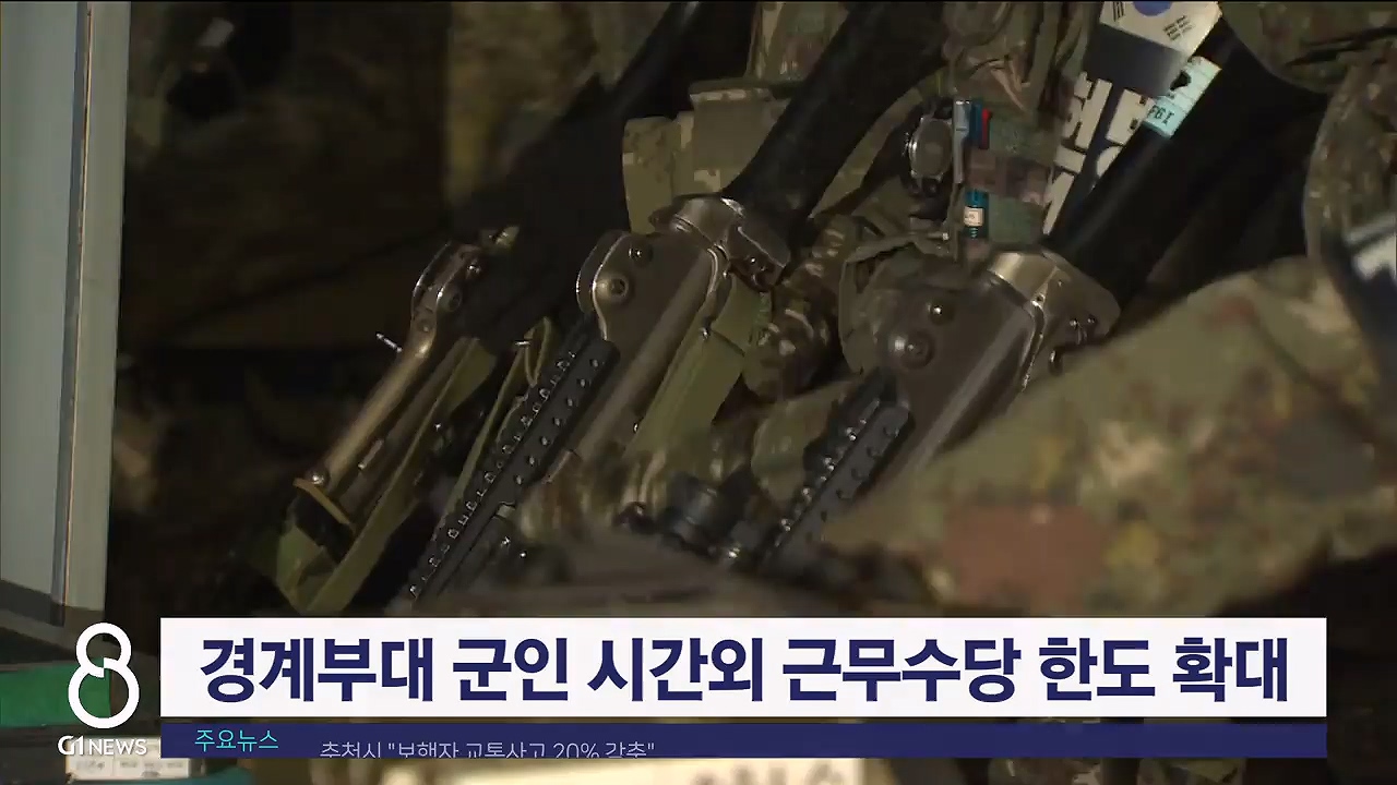 올해부터 경계부대 군인의 시간외 근무수당이 기존 월 최대 57시간에서 100시간으로 늘어납니다.