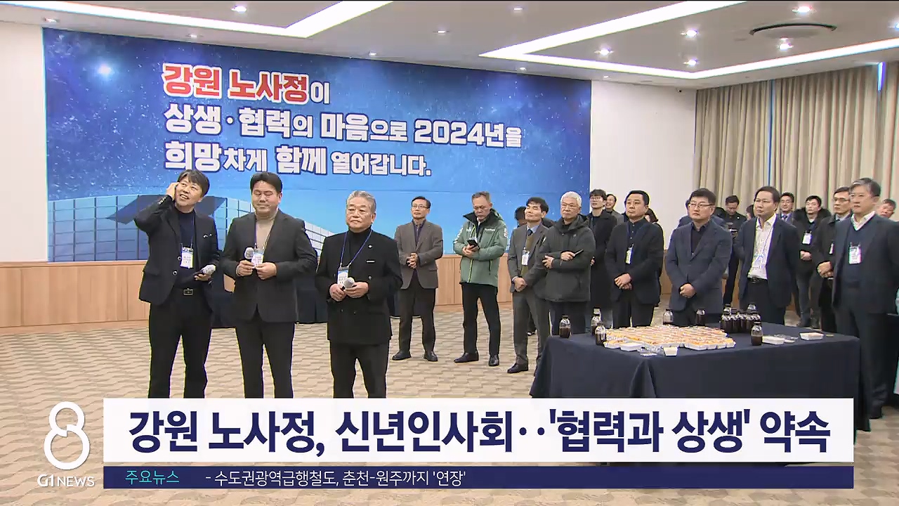 강원 노사정이 오늘(25일) 춘천베어스호텔에서 2024년 강원권역 노사정 신년인사회를 열었습니다.